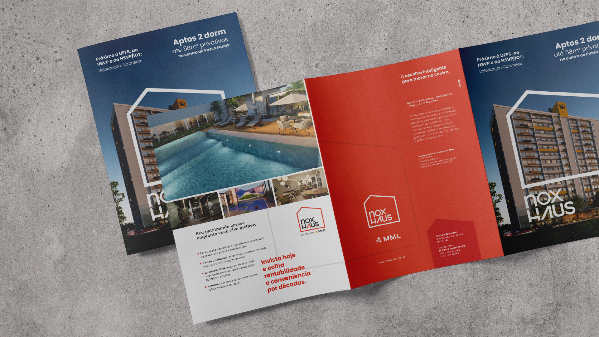 Toda a identidade e posicionamento colocam o NOX HAUS com uma marca forte, capaz de sustentar um padrão de empreendimentos que abre um novo mercado antes não atendido pela MML, sem abrir mão de aspectos como a localização e a qualidade construtiva.